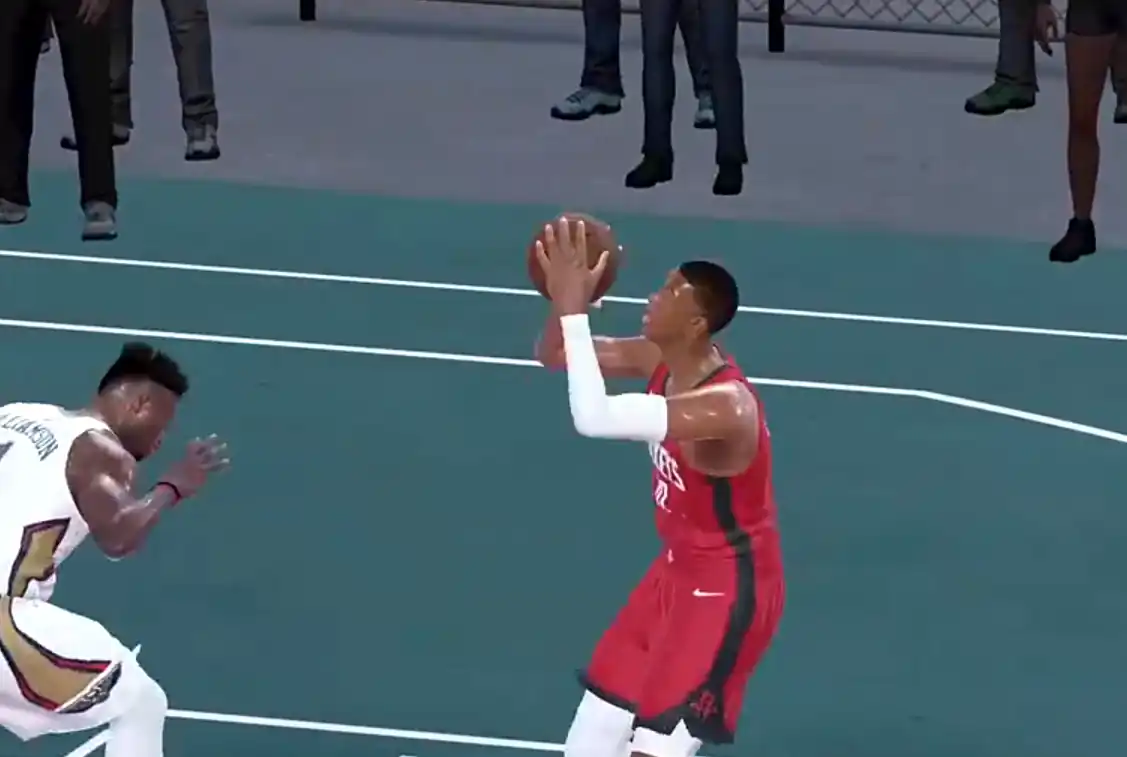 接着在动作包方面来看的话,整体的动作看上去并没有什么特别突出的。后撤的距离倒是蛮远的,你在后续可以看出他是一个适合跳投的选手。他的投篮包在出手速度上看起来非常快,然后也更加丝滑流畅,令人感到目不暇接。