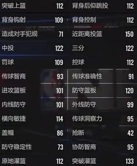101的进攻板以及120的防守板,则是能做一个副t。在101的内防,以及99的外防配上114的横移。86的盖帽虽然不是很突出,但是勉强还够用。114的速度,搭配上142的体力,特定的情况下也可以持球打一打,控球能力较为中等偏上。