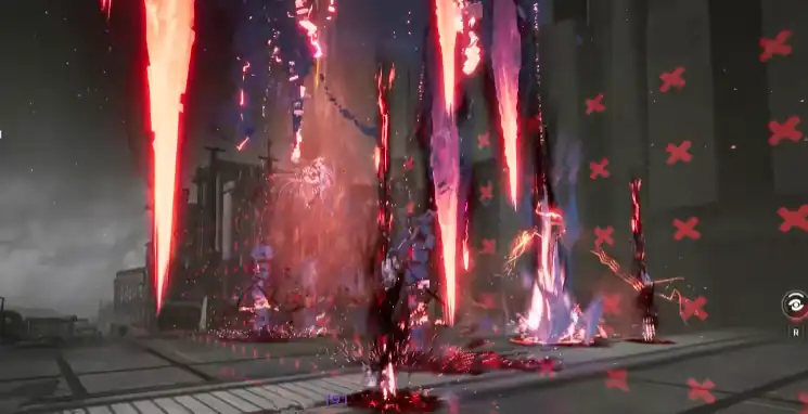 第一种空中技: boss飞天后,场地上会出现若干红圈,玩家需走位躲避。伤害判定速度非常快,建议尽量跑动,必要时使用闪避。
