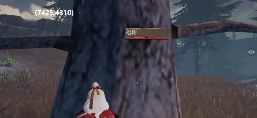 3、在雪山的地图场景上(7425.4310)这个点位置上,能获得松树这个木材道具;