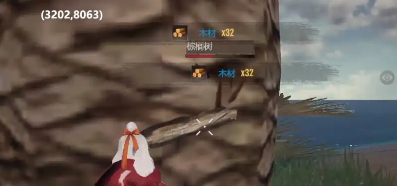 4、到了海边地图上(3202,8064)这个位置上,能获得很多的棕榈树木材道具。