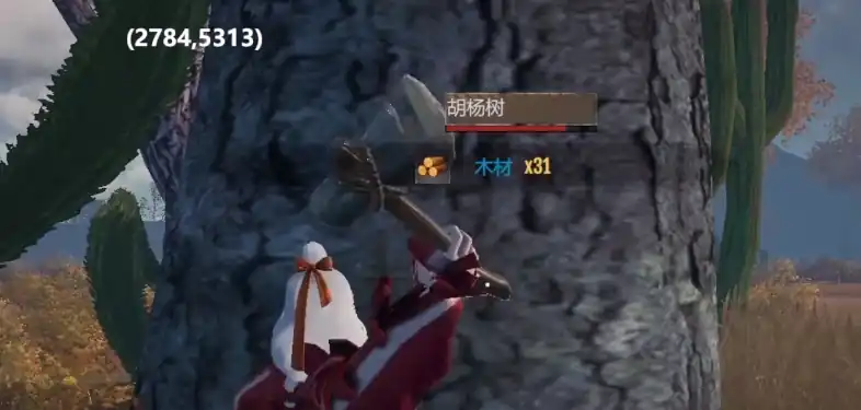 5、到了沙漠地图上(2784,5313)这个位置上,能获得胡杨树木材道具。
