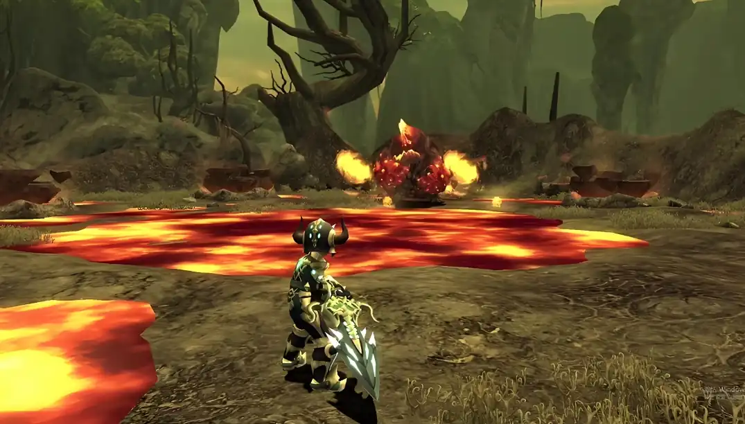 第一阶段它的技能主要是跳跃攻击、闪电攻击和喷火。这些技能属于初始技能,比如说跳跃时会在它落地时有红色范围圈的指示,如果再次跃起的话能对路径上的目标再次造成伤害,所以说看到红色圈指示时看一下向后撤或者是斜上方走位的方式来闪避;应对闪电的话可以利用它技能释放的前摇来撤退等。