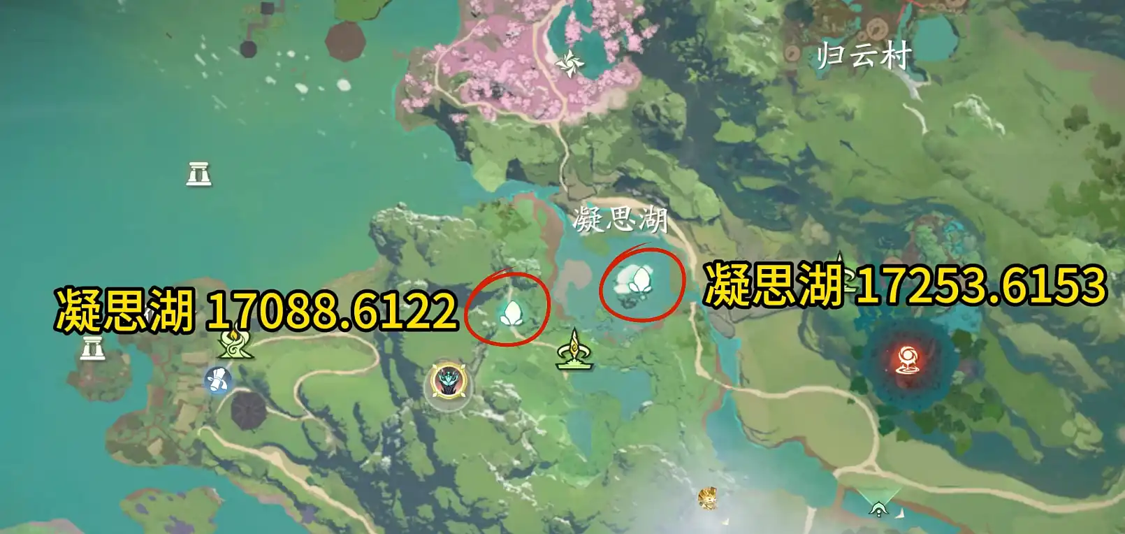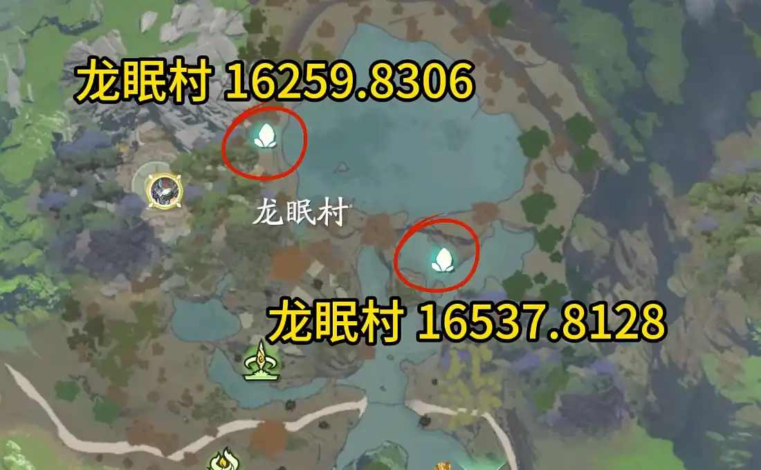 当然没有达到等级也没事,这边就直接把详细的坐标给大家,直接照着去找即可,第1、2个在银雾涧16421.7581,16494.7276,第3、4个龙眠村16259.8306和16537.8128,第5个在桃花旬上方的17247.6746。