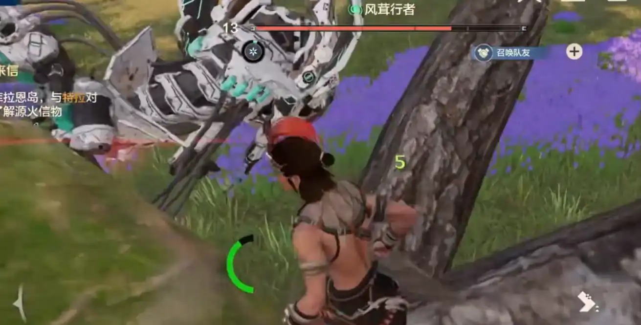 这里还有一个逃课的小技巧,玩家可以爬上BOSS区域旁边的大树上,从树上进行定点输出。这样BOSS的招式几乎无法攻击到玩家,除非用蓄力旋风冲击,当boss使用这招的时候就可以提前从树上爬下来。