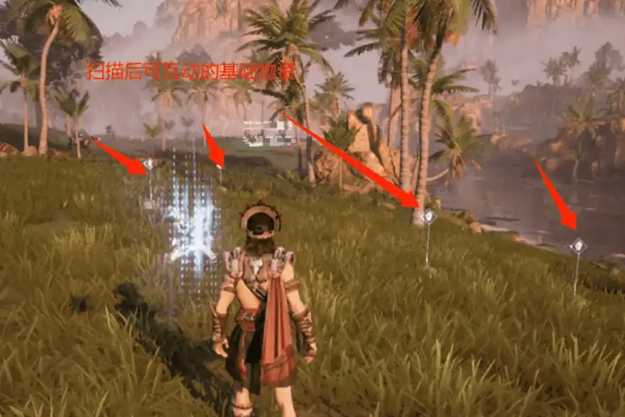 可探索物资主要分为基础物资和补给宝箱类,基础物资也就是周围可以直接采集的物品,大家可以在周边冒险时,利用扫描功能,这样周边出现的多处可互动物资都是可以进行采集的。