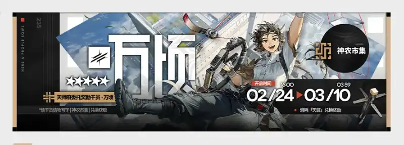 活动期间还可以通过活动关卡,可以完成“天师府委托”里的相关任务,获得5星干员“万顷”,还有大荒天师苑家具奖励,以及模组养成材料等等。“神农市集”也将开放,完成挑战和委托获得“天桩”,消耗可以兑换市集里的商品。