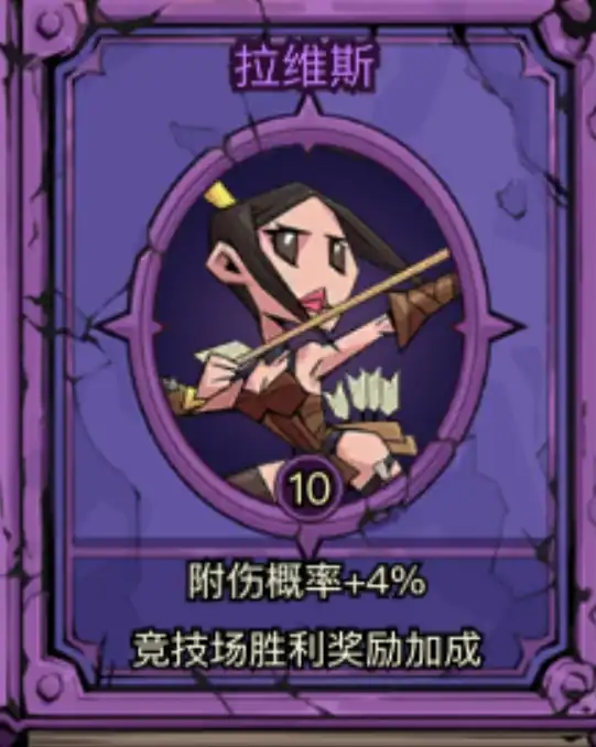 这个角色是需要玩家头衔达到毁灭者之后才能进行激活,实力是非常强大的,能力主要用于竞技场。如果玩家能够搭载它参与竞技场挑战,是可以直接叠加附伤概率4%的,同时还能有概率额外获取一个圣羽,能够再次增加我们的附伤机会,有效的提升了玩家的战斗实力。