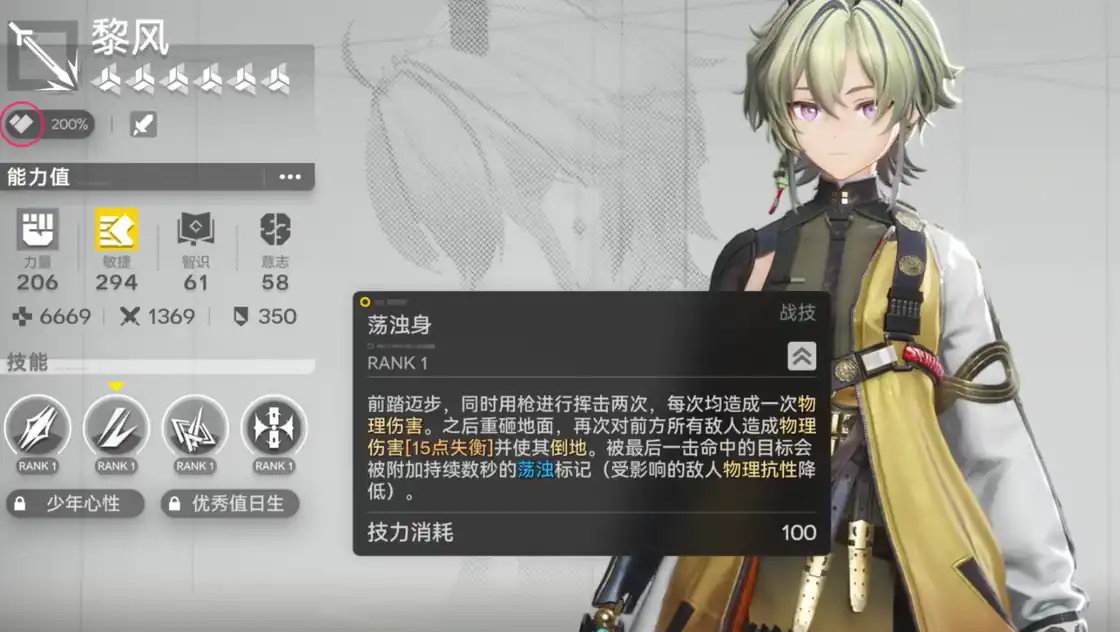 游戏中玩家可以反复抽取这名角色来提升角色的潜能,对于黎风来说当潜能达到五级之后所获得的加成非常恐怖,玩家可以通过闪避所衔接的追击来提升伤害,每次闪避追击都可以提升百分之50,并且这个buff可以叠加三次,再通过别的角色所提供的攻击加成,黎风的伤害将会获得非常恐怖的加成。