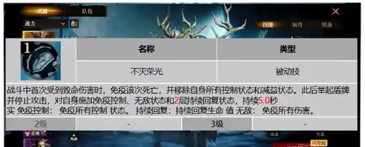 尤里恩最为关键的技能之一便是他的被动技能——不灭荣光。该技能使得尤里恩在首次受到致命伤害时能够免疫该次死亡,并且清除自身所有的控制和减益状态。这种能力让尤里恩在面对敌人的强力攻击时,能够在短暂的时间内免疫致命伤害,并恢复自身的状态。尤里恩将举起盾牌并停止攻击,进入免疫控制和无敌状态,同时给予自己一个持续回复生命值的效果,最大限度地增加了其生存能力,能够有效抵挡敌人的致命打击,给队友争取宝贵的时间。这一技能使得尤里恩在战斗中非常具有容错性,特别是在关键时刻能够发挥出其最大作用。