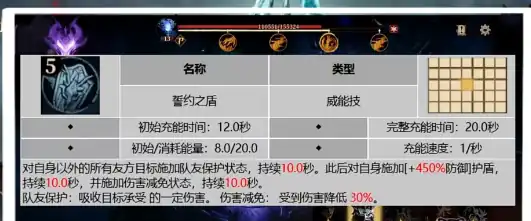 尤里恩的另一项重要技能是誓约之盾,它为队友提供了极为强力的保护效果。通过施加“队友保护”状态,尤里恩能够为团队中的其他英雄吸收伤害,这让整个队伍在面对敌人的猛烈攻击时,能得到更多的生存机会。此外,尤里恩自身会基于防御属性获得一个强力护盾,并且施加伤害减免状态,减少自己受到的伤害。该技能使得尤里恩不仅能为自己提供强大的防护,同时还能提高整个团队的生存能力,特别是在副本挑战和团队战斗中,尤里恩的作用不可小觑。