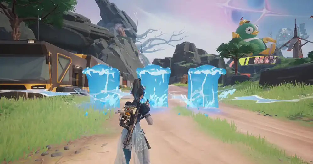 技能2:潜龙,下潜之后化为潜龙形态跳出水面,获取减伤效果,且移动速度得到提高,这种形态下脱离战斗且位于水域时,会自动回复自身生命值,维持潜龙的形态是需要消耗能量的,但是并没有CD,她处于该形态是能使用水遁和湍流领域的。