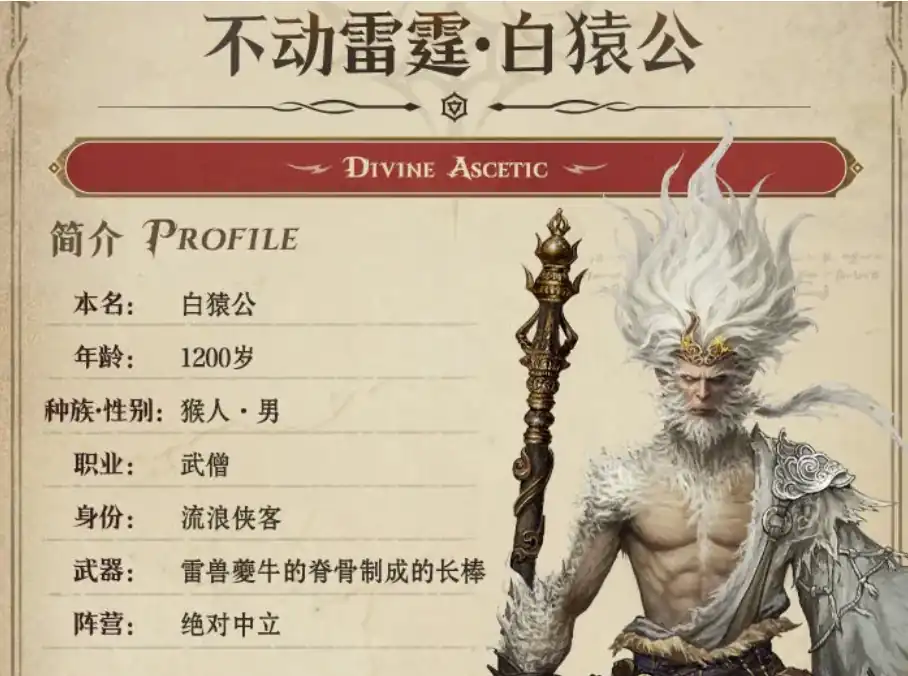 该角色的原名是白猿公,武僧的职位是很多伙伴所向往的,超脱世俗飘忽不定的他始终拥有一个不愿被尘世所玷污纯净的心,为了感谢粉丝们的热情官方会在游戏上线之际推出相关互动,让每位玩家有几率得到这位专属独特的角色,而且是没有任何前提条件的哦。