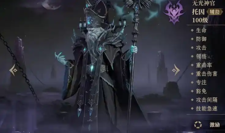 无光神官:这位是当前版本里最近非常热门的一位奶妈,尤其是在一些高难本之中发挥的作用非常高,首先介绍他的队长技,他的队长技是增加队伍中队友50点豁免,豁免对于很多成功率的技能来讲还是有很大影响力的,他的被动则是一个标记,我们在战斗开始的时候可以对我方前面的一个队友进行标记,标记之后的队友可以获取到神官25%的生命上限和防御,并且同时还可以获取到隐身的能力。