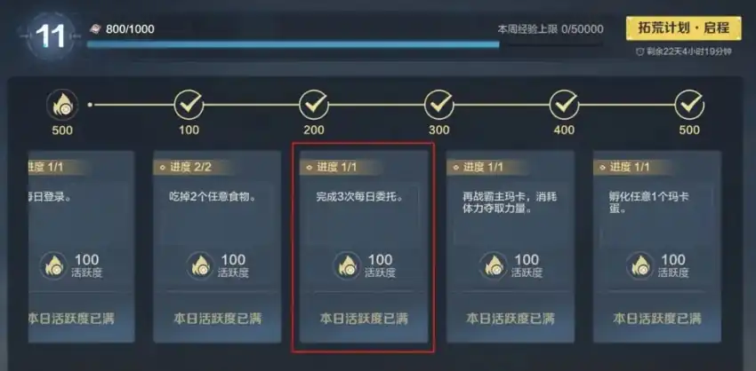 训练系统当中大家会看到很多的任务,都是以一天为期限的,在上面每成功完成一个任务,便能收获100活跃度,而每累积100活跃度都可以兑换对应的丰厚奖励,其中就包含大量珍贵的阅历,值得注意的是每日只需达到500活跃度就能领取全部奖励,所以新手时期大家完全可以挑选其中五种自己较为擅长且容易完成的任务来获取活跃度。
