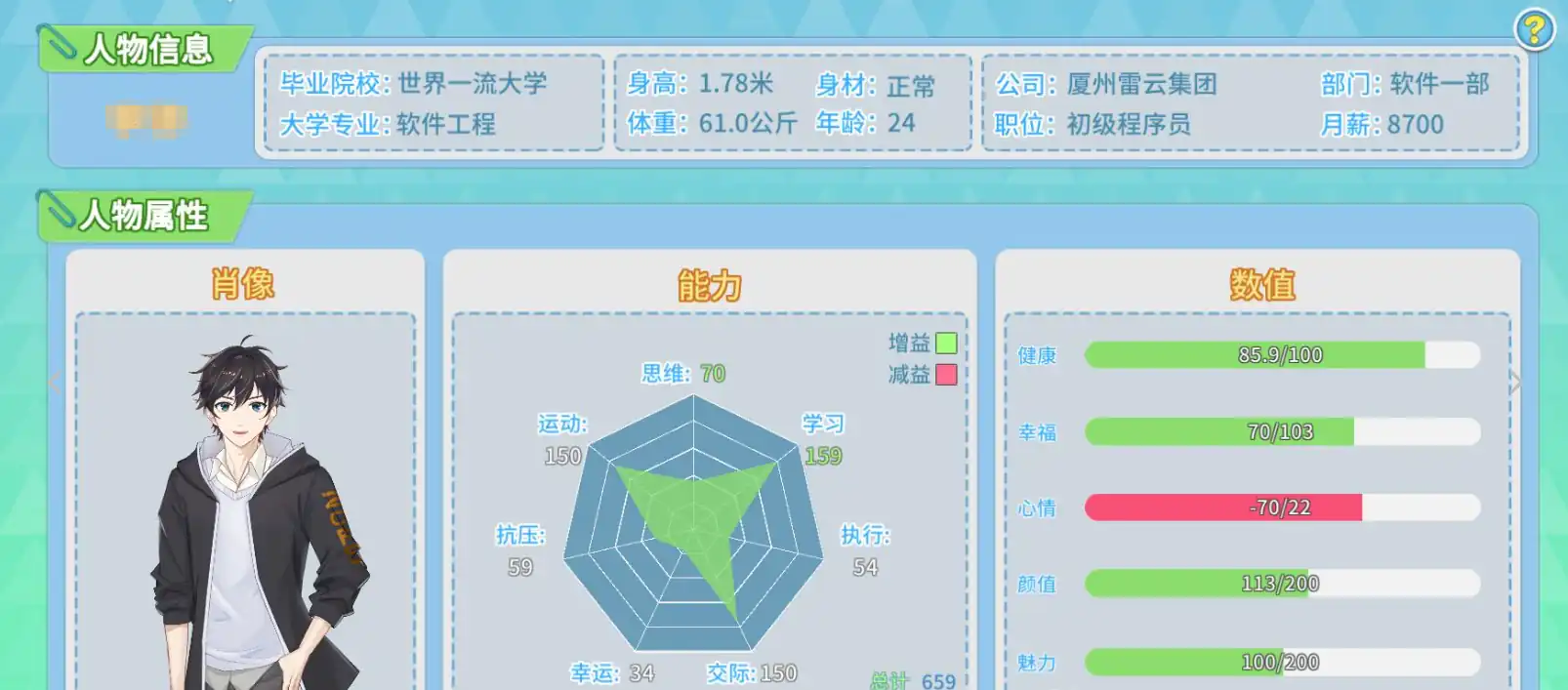 毕竟可能很多朋友在一开始时都没有注意角色的身材管理,导致主角的身材走样,这其实是很影响角色的魅力值的,而且体态的改变并不会非常的迅速,会需要大家付出一定的时间和耐心。