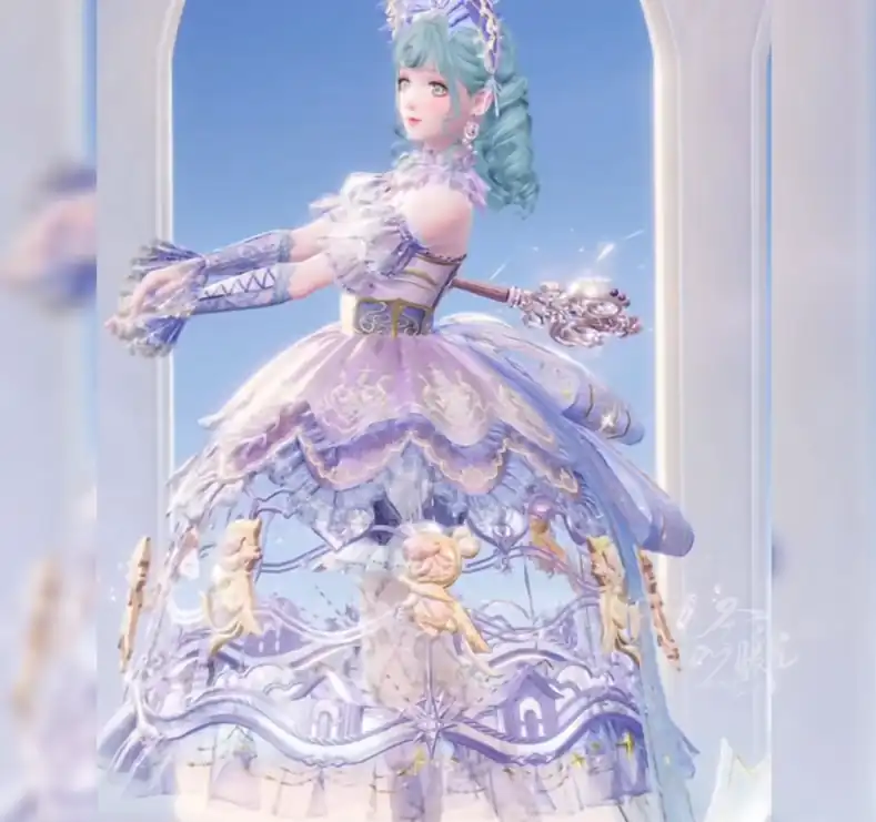 八音盒套装,裙摆采用童话和梦幻风相结合的形式。120~180抽可以抽齐5星套装,当然不同玩家有一定的运气差距,一般需要1.5万~2.2万的钻石。4星抽齐则需要50~80抽,大约7k~1钻的样子。