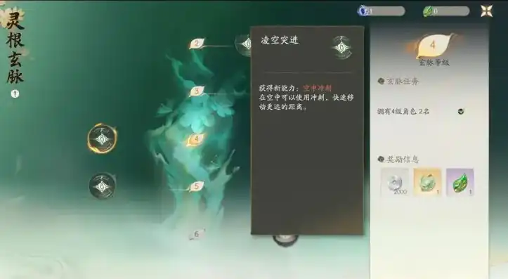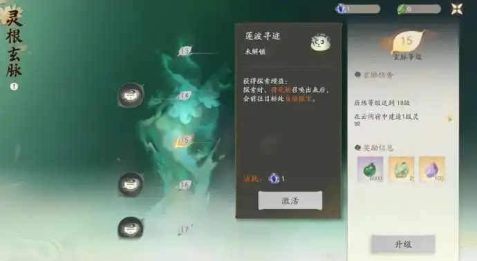 天赋系统也被称为灵根玄脉,玩家通过任务提升其等级,同时获得战斗增益、灵元等奖励。灵根玄脉共有六十等级,玩家每晋升一级天赋,直接获得一个增益效果,比如化灵、御物、凌空突进等。