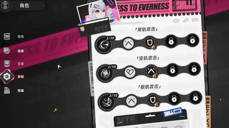 目前在战斗中,玩家最多可让4名角色同时出场,组成一支队伍,角色之间存在联动机制,绝大多数情况下,大家的战斗策略都要围绕队伍中的4名角色来进行安排,在角色上面前期角色推荐大家用零,这是迄今唯一一位无法检测出维特海默值的异能者,作为一个女性角色也是很多玩家可以直接获取的第一个角色。