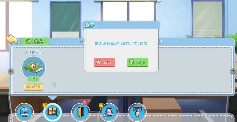 有剧情任务时,可适当分配一些行动力给剧情,由于110到150的属性差为40点,而培训一次可加3的倍数点属性,但只能加39或42点,所以要先将属性加到111点,才能被3整除,因此如果开局属性为偶数,可以先培训一次,使其变为奇数,从而达到111点,在第二年2月前角色会回家2次,分别在9月和1月各回一次,记得在健身房和网购购买运动器材,回家时运动属性基本能达到110多,到老宅健身,安装好器材,换上卫衣,锻炼恢复健康。