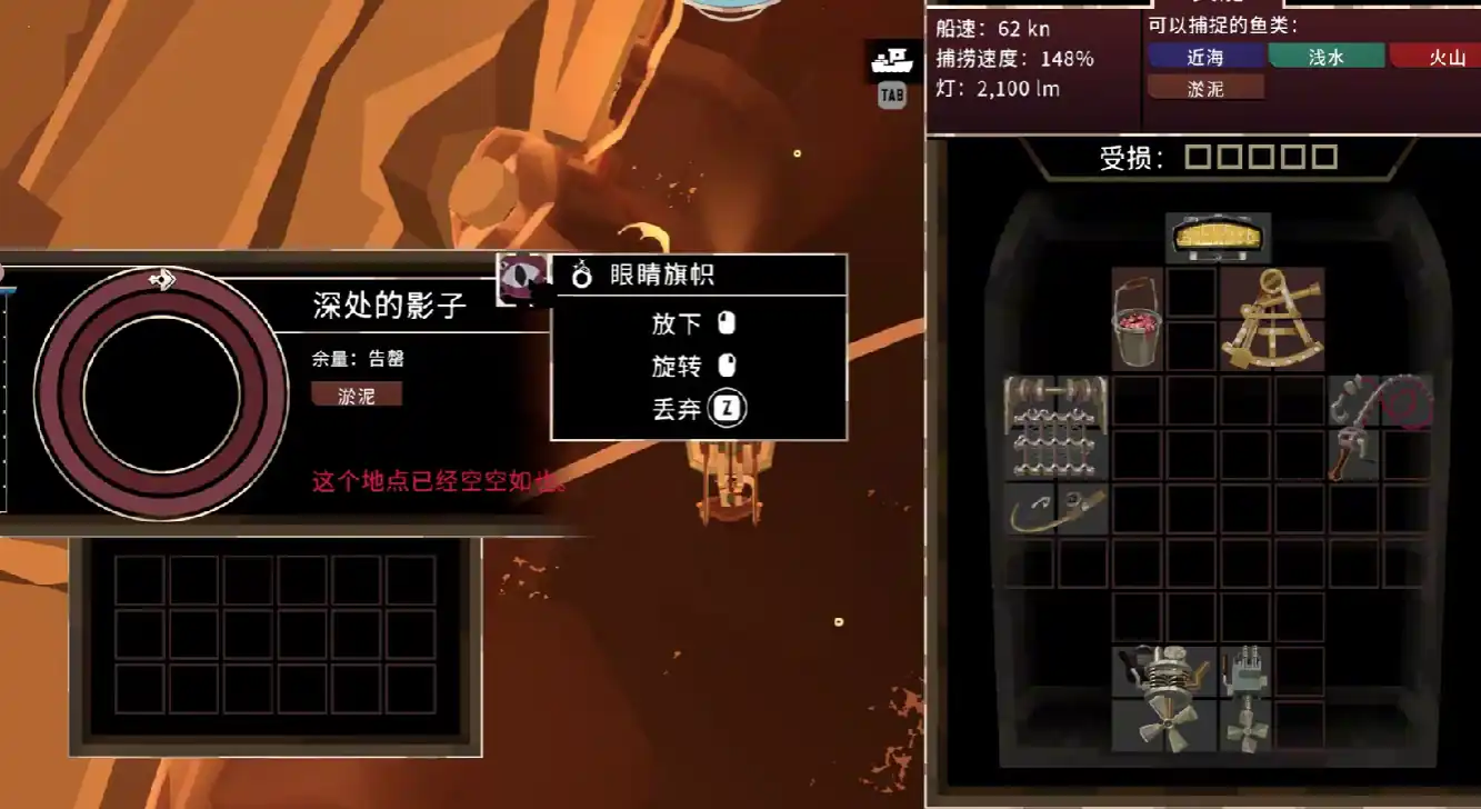 玩家通过望远镜在水面当中,看到一个旗帜形象在漂浮时,就代表水底有眼睛旗帜,玩家直接打捞就可以获得了。