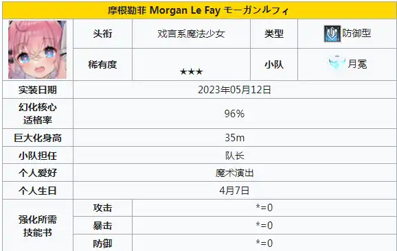 摩根勒菲:会拥有三种不一样的形态,开始主要是以输出为主,可以秒杀攻击型的敌人。到了后期就可以克制防御性的敌人,能够有效实现群秒,这就是阵容中的核心角色。
