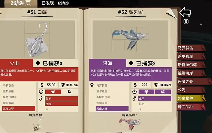 玩家若想将魔鬼鲨收入囊中,在工具的挑选上可得下一番功夫,鱼竿和拖网是可行之选,不过为确保捕捞行动顺利进行,推荐选用高品质且具备强大抗拉强度的鱼竿,以及网口坚韧、收网迅速的拖网。毕竟,魔鬼鲨身强力壮,又栖身于复杂多变的深海环境,只有精良的装备才能与之抗衡,令人欣喜的是,魔鬼鲨并不像一些鱼类那般“昼伏夜出”或者“夜伏昼出”,它在白天与夜晚都会频繁现身,这就给予了玩家较为充裕的捕捞时段,大家完全能够依据自身的游戏节奏和探索规划,随时向着恶魔之脊深海区进发。
