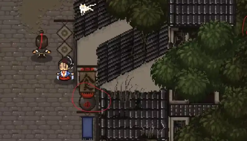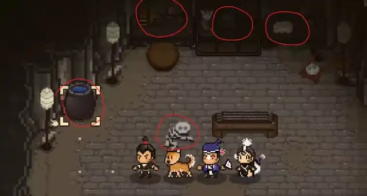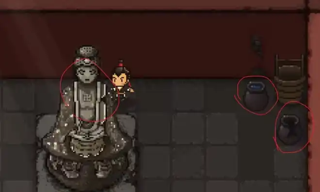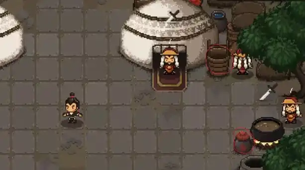 首先大家要探索的是羊太傅庙,在这里水井中隐藏着沉重的古剑,获取它需要你的轻功达到31级以上,而在水井左右的两颗树根下,分别藏着16和13枚金钱,水桶中则放置着能够补充体力的炊饼,踏入羊太傅庙内,大佛胸口处藏有101枚金钱,佛像左侧的两个水桶里分别有着蜜糕和豆蔻饮子,右侧的两个罐子则各装有干木饮子和25枚金钱。