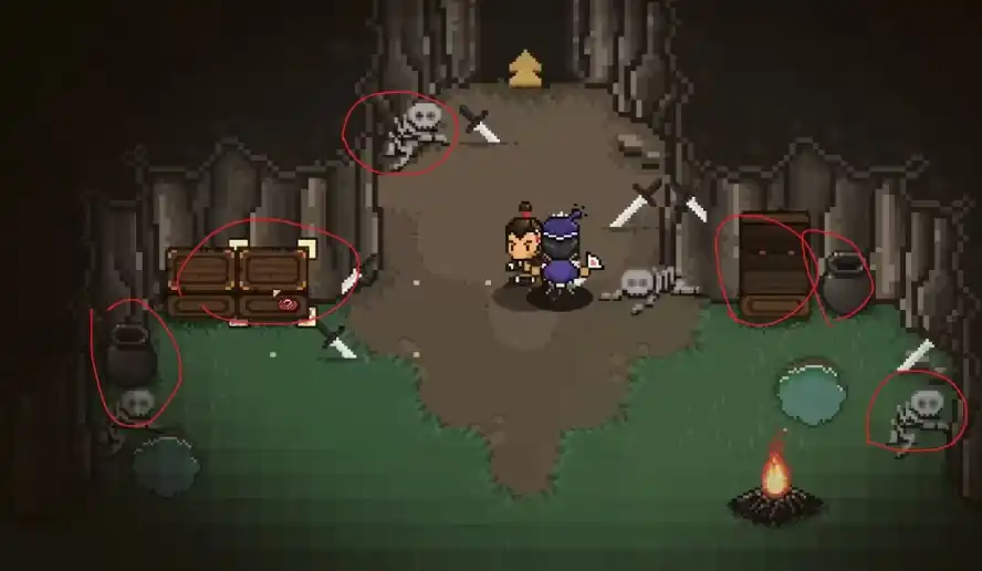 沿着探索之路前行来到三斗坪水道,进门左边拐角处的骷髅藏着24枚金钱,继续往上走,又能看到骷髅旁边有21枚金钱,在小湖的左边麻袋里装有17枚金钱,接着来到三斗坪水道2,在右上角骷髅所在之处可以找到还灵草,左边骷髅那里则有止血草,并且在左边骷髅的上方一点发光处,仔细挖掘可得到200枚金钱。