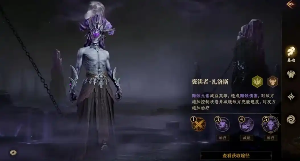 与沙格罗不同,扎洛斯则是一位擅长控制和治疗的英雄,他的被动技能让他在第4次普攻时,能够额外为一位生命值最低的队友带来恢复,同时100%对敌人施加沉默效果,这一技能在战斗中极为实用,既能保护队友,又能限制敌人的行动,战技会对范围内的敌人造成380%的黯蚀伤害,并且有75%的概率降低敌人的充能速度30%,这一技能不仅能对敌人造成大量伤害,还能有效延缓敌人的攻击节奏,在范围输出上面除了有元素输出之外,还有35%的概率施加恐惧效果,让敌人无法进行普攻和释放技能,最后扎洛斯还会对所有队友进行治疗,治疗量根据之前命中敌人的数量增加,每次命中都会让治疗量增加15%。