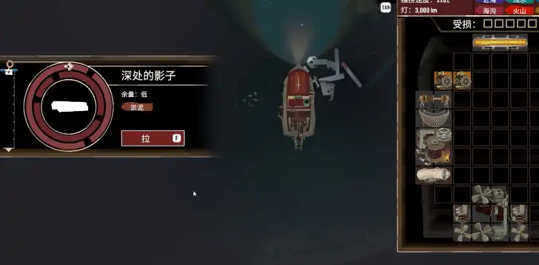 玩家在海域附近通过打捞可以发现深处的影子,而布料的影子样式小编在下图当中进行了展示。而且这类物资在海域周边的数量情况会直接在资料框当中进行显示的。当探测到该类物品后,可以直接点击小船上方的鱼钩标志进行拉取。除此之外,在钢铁岬角这里,玩家除了可以刷到布料,像木头、金属这些常用资源都可以成功获得,在捞完后直接去码头靠岸,然后将相关材料进行保存。再次重启游戏,进入到游戏中可以继续在该位点进行材料刷新。