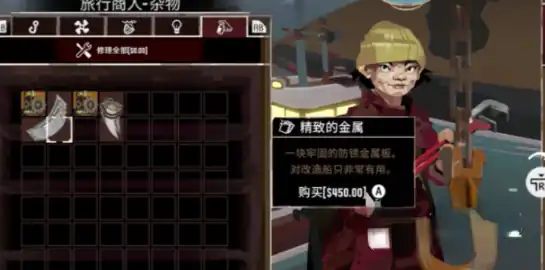 当然还有一种方法,获取模式更加简单,玩家可以前往旅行商人处与他进行交易,无论是布料还是金属物资,都可以在这里成功交易,不仅可以拿到物质资源,而且还可以兑换到丰富的金币。对于一些心急的玩家来说,这个渠道是更为快捷方便的,建议玩家可以尝试,而且像研究部件,高级铁板这些稀缺资源,通过旅行商人也可以快速刷出,不过需要消耗玩家一定金币资源。