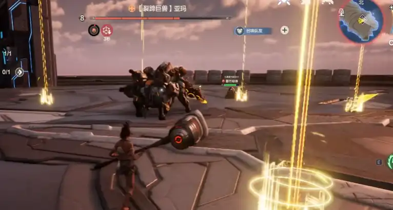 霸主级的玛卡,位于裂蹄原野,坐标(8290,9589),boss会冲撞,释放激光导弹,还有咆哮,每个技能的伤害都很高。可以考虑用大锤近战,或者弓箭远程。流程到这里的时候刚好解锁了大锤风属性的战技,而风属性刚好是克制boss的,作战前仍旧是准备老三样食物,出战的玛卡等级尽量高,要吸引boss火力。大锤近战的伤害高,主要以蓄力攻击为主,需要提前找位置站住蓄力,蓄力到闪光的时候有霸体,不会被打断,必要时刻可以稍微硬抗一下。