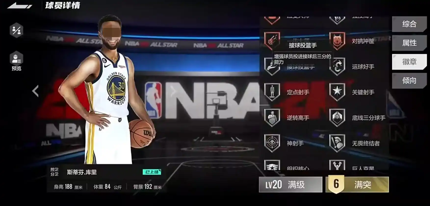 除了这三个比较强势的之外,还有绿色机器,保持警惕,定点射手,无球跑位等徽章,对于投射来说都非常重要。尤其是绿色机器,在连续极佳出手后可以获得额外加成,这样滚雪球的优势会更大。
