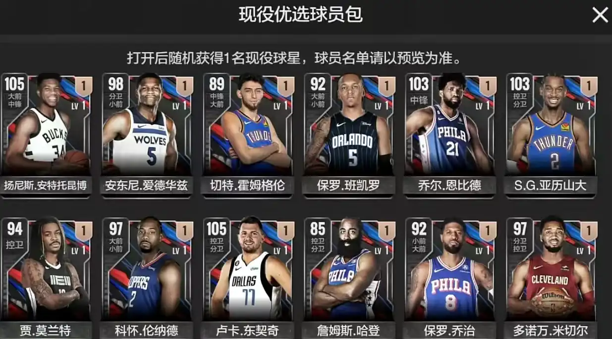 第3个是现役优选球员包,打开之后随机获得一名现役球星,这里面基本上不会出现平民球员,这里面球员的身价都是非常高的,例如250万身价的字母哥等。开这样的卡波出现高价低能球员的几率就非常小了。所以如果大家想要获得核心球员,非常建议在这里面去开。第4个是现役精选球员包,这里面开出来的都是现役球星中的顶级之类,如果大家在开服抽到,而且不着急换合同费,可以留在手中。这一类型的球员培养起来就比较困难了,因为很难买到足够的卡,所以大家一定要考虑清楚。