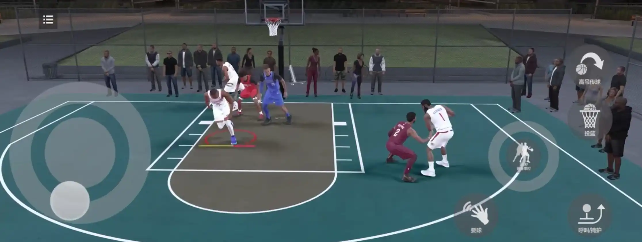 在街头模式中双方都可以上阵三名球员采用的是半场3V3对局的方式,时间只需要5分钟,所以节奏非常快,很适合在休闲时间内直接拿出来玩一局。为了在规定时间内打出操作与配合,大家需要先了解一下三名球员的位置介绍。一共分为3个号位,1号位指的是头号持球手,负责的是组织和进攻,2号位指的是外防主力,同时也要具有一定的投球能力,3号位指的是负责篮板的球员,在模型方面一定要符合要求。
