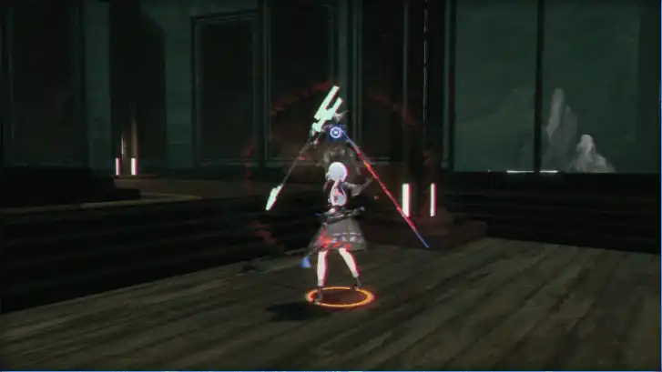1技能“刀啸决”,切换自身形态,在“寒峭势”和“孤峰势”之间切换,前者造成光属性伤害,并从寒峭切换为孤峰,后者也打出光属性损伤,并切换成另一种形态,释放该技能时获得格挡效果,成功格挡攻击时获得无敌,触发额外攻击,敌人受到光属性损伤,切换形态后,“鬼神式”和“无我意”冷却缩短。