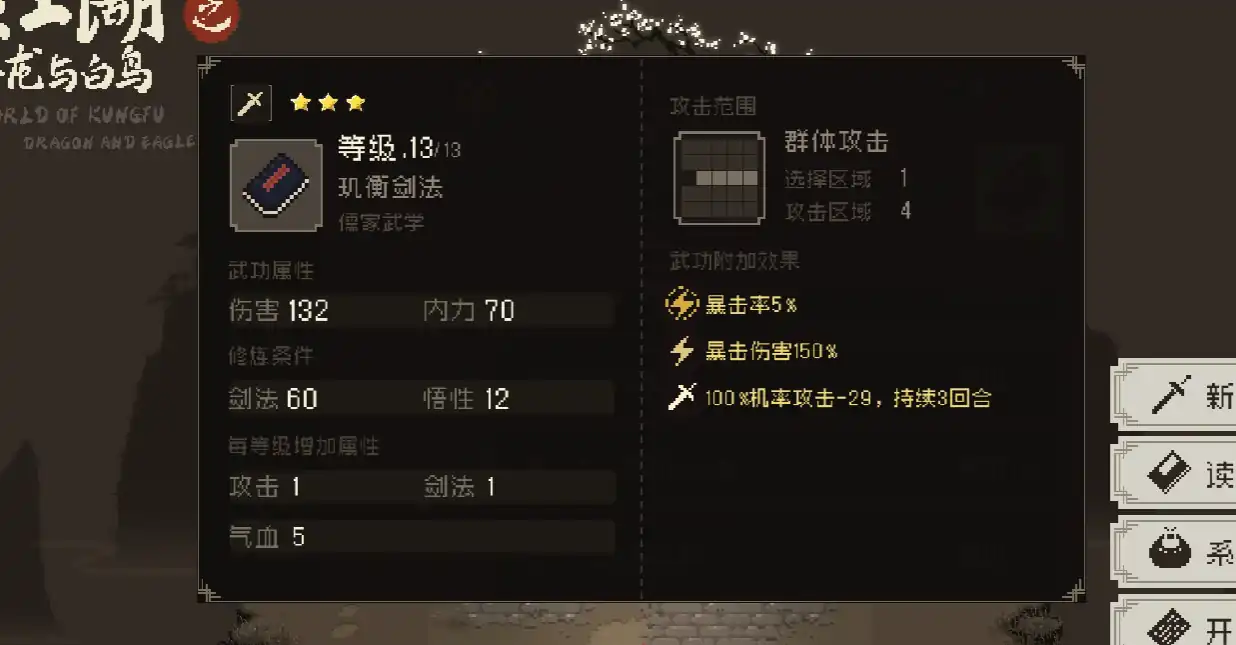 本期给大家带来大江湖之苍龙与白鸟神功获取攻略,是一款以复古玩法为主的战旗游戏,在这里小伙伴们可以通过角色扮演去感受回合制玩法的魅力,沉浸式的投入到这个武侠世界当中去,而武侠世界中随处可见的就是各种功法秘籍了,在这里小伙伴们需要想尽办法去获取,每个功法都有不一样的能力,能够给大家带来不同的战斗效果。