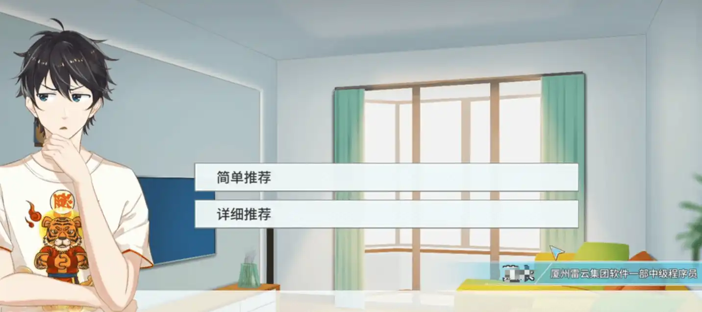 这里有简单推荐和详细推荐两个不同的选项,建议选详细推荐,这样更能增加好感度,等她到来后,大家会经历秦知非和她男友吵架的剧情,为了这段剧情建议大家时刻准备好一包纸巾。