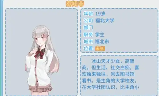 职场浮生记秦知非拥有着一头白色的长发和齐刘海,给人感觉非常的可爱俏皮,不少玩家在游戏中遇到她后,都想知道该怎么提升好感度,那么下面就来分享一下与这位女生相处时的全部流程,帮助大家顺利的变熟从而提高相应的好感度,喜欢秦知非的玩家赶紧来看一看吧。