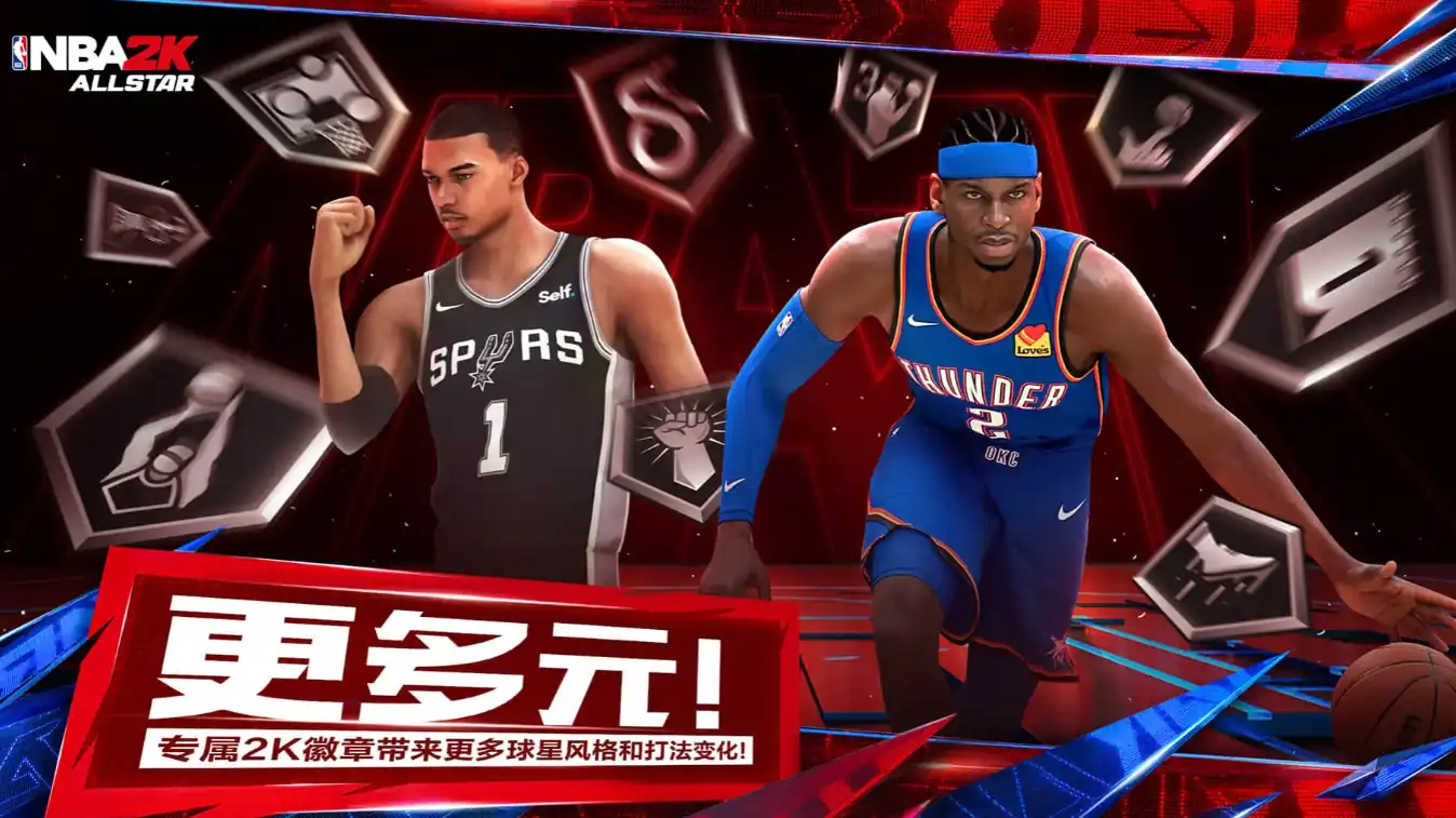 《美职篮全明星》是一款有着NBA正式授权的篮球竞技游戏,在这款游戏当中,玩家将会沉浸式的体验到NBA赛场的乐趣,游戏采用了最新的2K引擎进行制作,在真实感和画面的感染力上面,都是下足了功夫的。