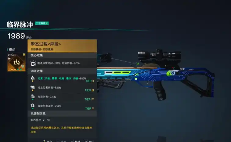 临界脉冲是很多玩家都比较喜欢选择的一个电弩,操控会比枪支灵活一些,虽然射程没有枪支距离远,但不管是针对怪物还是进程战斗都是完全够用的,在搭配推荐物之前,先来分享一下这个武器的设定,武器假如可以击中对手,那么有极大的概率可以产生电流,如果能连续攻击,那么每隔0.5秒就能触发一次电涌,这个电涌是可以无限叠加的,假如在这个时候角色是充能状态,那在命中目标之后就会消耗一层充能,然后能转化成超高的电离元素伤害。