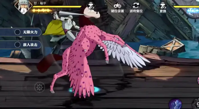 施展二技能之后,甘福尔将会召唤出一只大鸟协助自己战斗,此时甘福尔而将会进入到飞行状态,带有加速效果的同时,可以控制大鸟向前突刺一段距离,可以对敌人造成不同的效果。但缺点就是在天上飞行的时候是有一定的概率会被击落的。在战斗中通常需要先施展一技能,再施展二技能,最后再打出奥义和普攻。