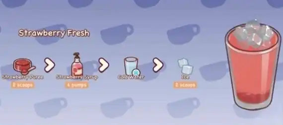 鲜草莓的主要原料包含2勺草莓酱、4泵草莓糖桨、2勺冰块和冷水。这些简单的材料往往会在游戏中得到,以保证玩家能够快速设计这类饮品。草莓酱和草莓糖浆的甜味与冰水的清爽相结合,口感会更佳。