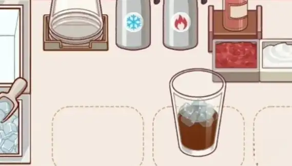 萃取完成后,玩家需要准备一个干净的杯子,并在其中放入适量的冰块。冰块的作用是迅速冷却咖啡,使其达到冰美式所需的温度,接下来,将刚刚萃取的浓缩咖啡缓缓倒入杯中。