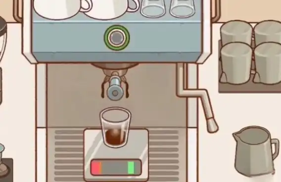 接取咖啡粉后,下一步是布粉,布粉的目的是让咖啡粉均匀分布,以确保萃取时咖啡液能够均匀流出。在游戏中,玩家需将咖啡粉均匀地撒在咖啡机的滤网中,粉末铺好后,启动咖啡机,开始提取咖啡液。萃取过程中,玩家需要密切关注咖啡液的颜色和流量,当咖啡液到达绿色标记处时,立即停止萃取。