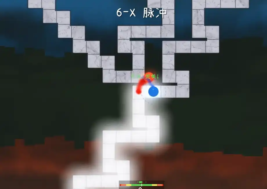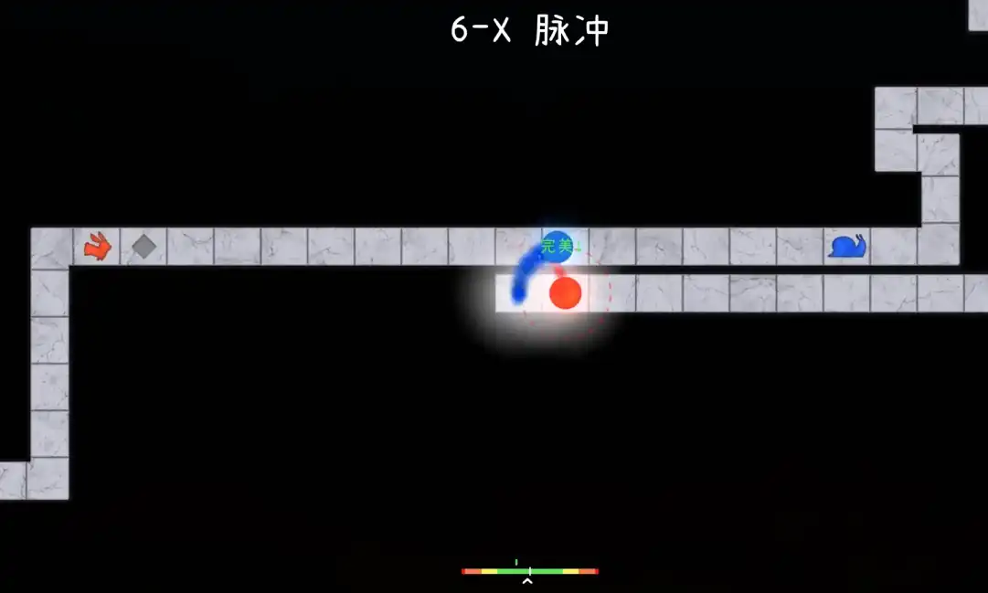 但毕竟是6-X关卡,脉冲这一关当中会涉及到很多在之前关卡中出现过的操作。比如上下总是弱拍子的现象就在6-X中常常出现,如果不想因为弱拍子而错过轨迹转换,小编建议大家可以在弱拍专项训练的第二章节进行练习。另外,脉冲当中有很多三折弯和蛇形弯,通俗来说就是需要连续进行的操作,三连拍的三角弯也会在其中出现。这里小编给朋友们提供几个除了多多练习之外,能够为通关提供助力的技巧。首先在转弯之前,都能在屏幕中看到下一个转弯的形态,这时可以通过操作控制小球保持匀速前进的运动状态,不要为了贪图过关速度而盲目加速,这样很容易导致在转弯时无法收束速度,出现跳出轨迹的情况。