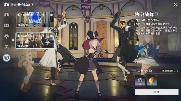 协会有自己专属的频道,所有成员都可以在此频道中进行沟通交流,还会提醒大家及时参加协会相关活动,领取相应奖励。协会要想发展起来需要消耗资金,除了上面所说的签到之外,完成相关任务和活动都能获得一定的资金。例如可以通过完成货运任务来获得,或者是上交一些物品,这些都能够快速提升资金。协会主要活动都是一些限时类型,例如在周五18:30到周日24点,都能够参加协会战舞,获得大量贡献和卢诺琥珀。在周五19点至周日24点,都能参加协会狩猎,需要邀请同一协会的成员,一起完成副本考验胜利之后获得奖励和狩猎积分。当积分达到指定的数量时,还有额外奖励赠送。