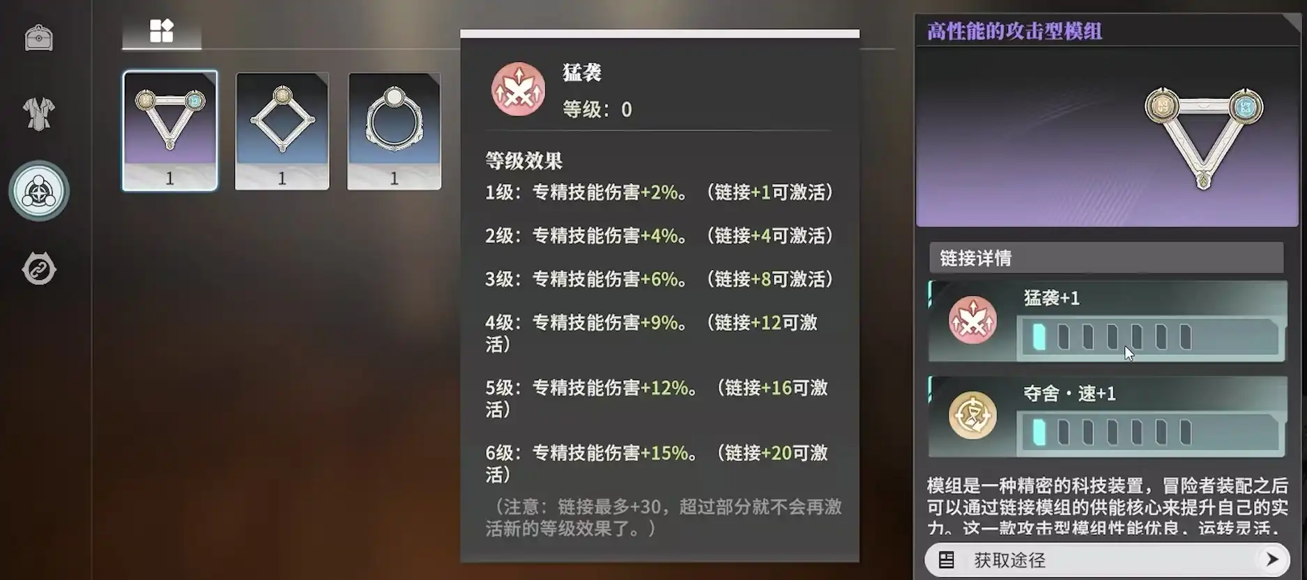 首先大家要清楚游戏中和战力相关最密切的主要包括装备、重铸、精炼、意志、技能等级和进阶,天赋的熟练度和天赋树、模组。首先就是装备,高品质装备加成自然就高,装备的获取方式主要包括副本获得。不稳定空间可以产出装备和合金碎片,将极限副本打完,可以在副本开启界面的每周目标那里领取合金碎片和装备,遗迹内的精英怪物也可以掉落合金碎片、意志和装备,Boss则是掉落金色意志和金色材料,以及装备、合金碎片。当然也可以通过刷boss的方式来得到。