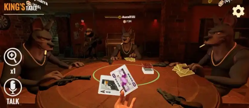 每局游戏,会有6张Q,6张K,6张A,2张万能牌。每局游戏会指定恶魔牌,如果拥有的话,恶魔牌只能是单张出,在每次出牌后,下架有机会点击验证,验证成功的话,出牌的你需要射击一枪,验证失败的话,质疑你的玩家则需要开一枪,如果验证出恶魔牌的话,在场的所有玩家都需要开一枪,哪怕已经成功逃脱的玩家也要自开一枪。当场上只剩一人时,战局结束。
